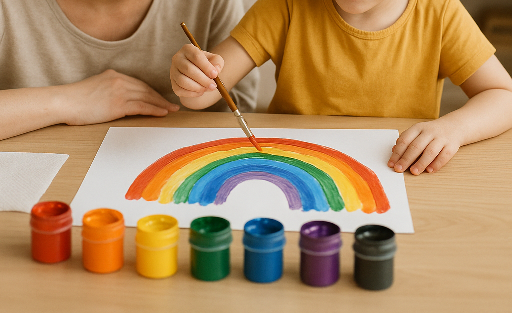 "아이와 무지개를 그리며 시작하는 첫 번째 하루"