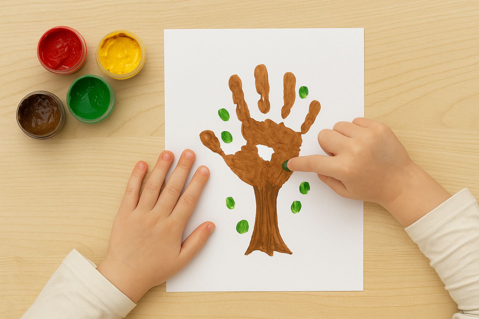 아이의 손에 물감을 발라 도화지에 꾹 찍거나,