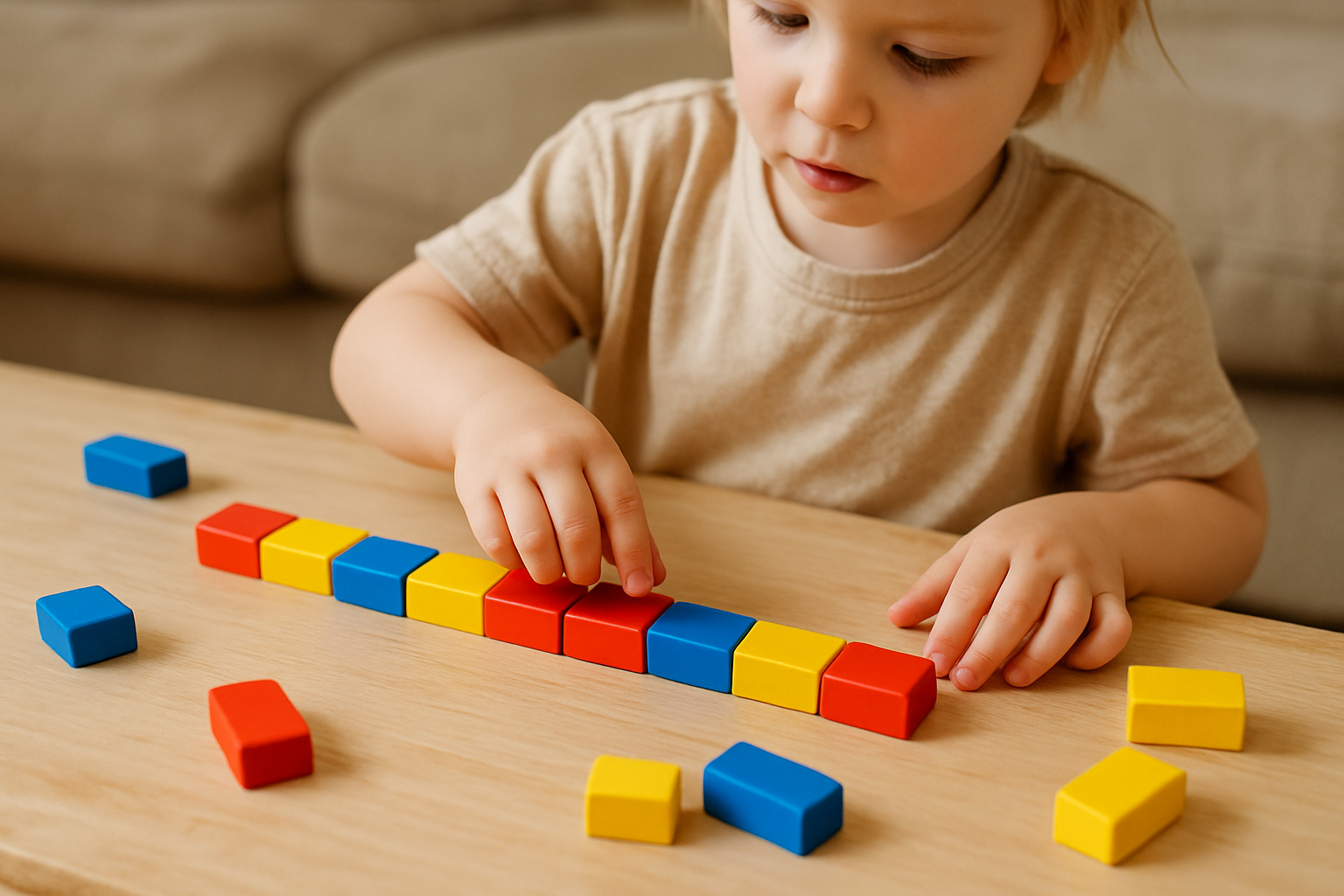 아이가 직접 ‘색–모양–높이’까지 포함한 나만의 패턴을 만들어 보게 해요.