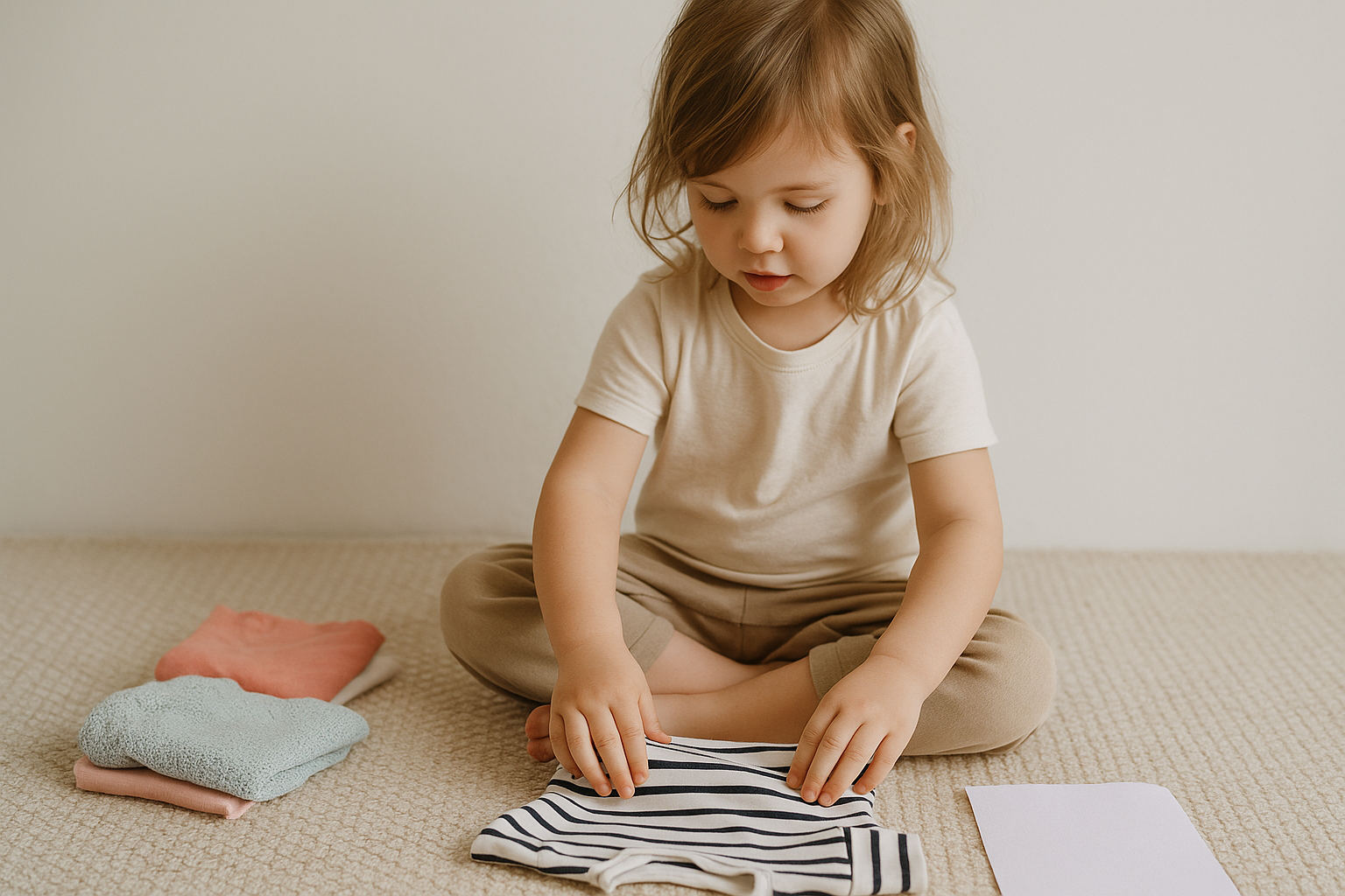: 스스로 옷을 접고 정리하는 경험은 자립심의 기본이 됩니다.