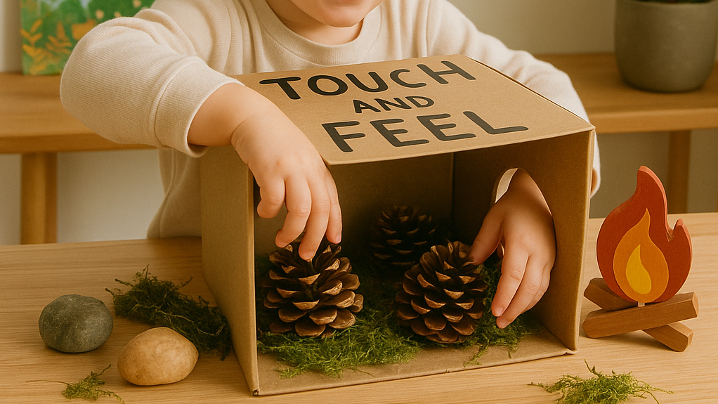 촉감 상자에 소리 나는 물건도 넣어 '이건 만지면 무슨 소리가 나지?'로 청각과 촉감을 결합