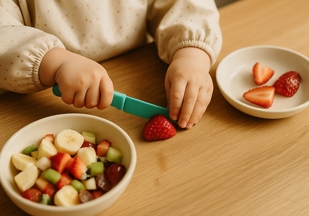 - 아이용 플라스틱 나이프 또는 손으로 찢을 수 있는 과일