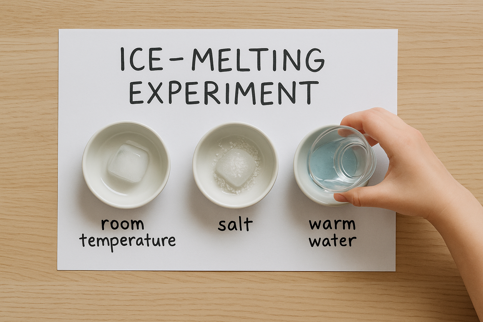 "소금이 얼음을 녹일까?" 예상 → 실험 → 결과 적기