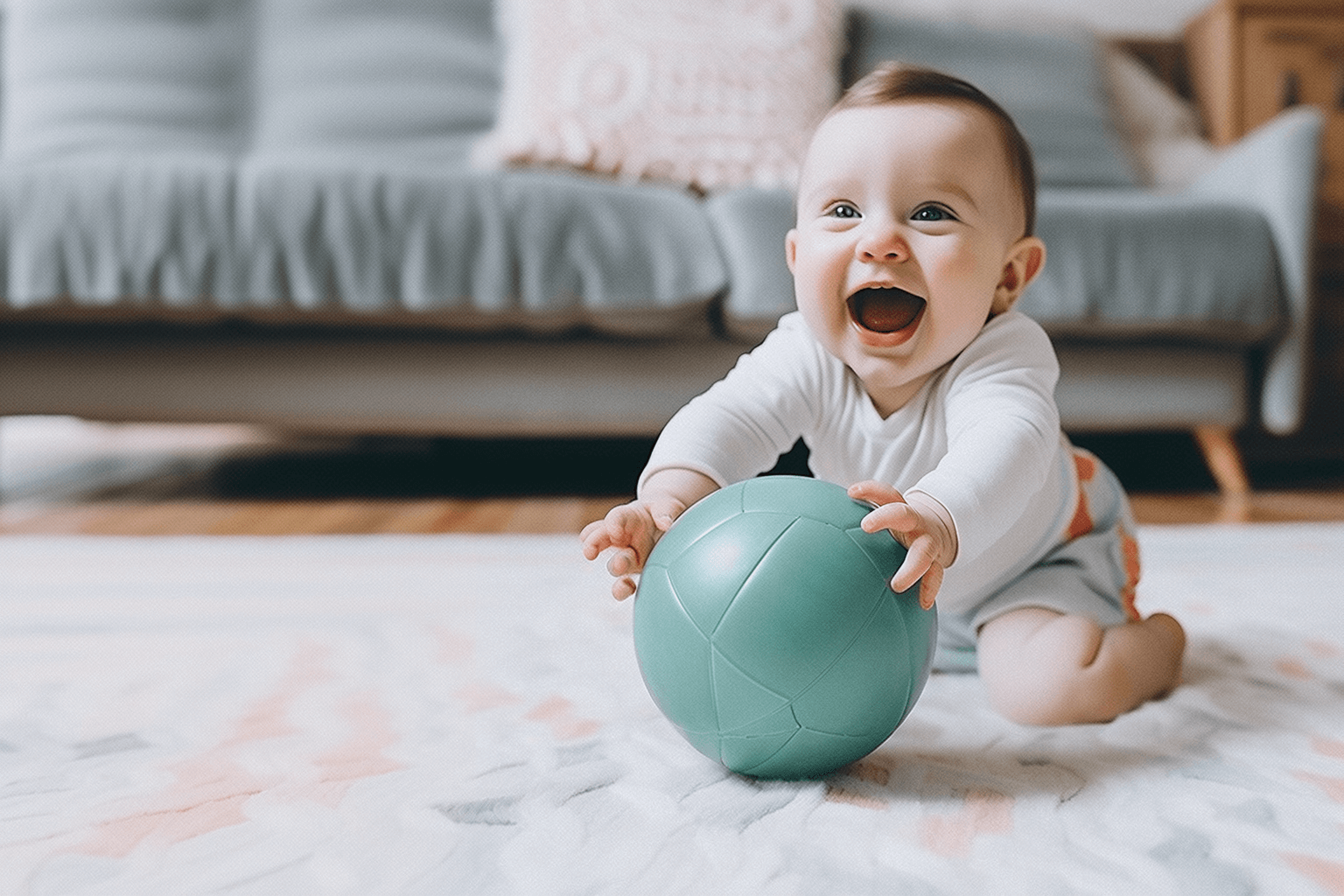 아기의 맞은편에 앉아 공을 아이에게 굴려준다. “데굴데굴 공이 하오한테가고 있네” 이때 데구르르, 데굴데굴, 통통, 콩콩 등 다양한 의성어와 의태어로 공의 모습을 표현해 준다. “하오야 엄마한테 슈욱 공 보내줄래?”와 같이 아기가 공을 굴릴 수 있도록 격려해 준다. 하오는 굴리기보다는 바닥에 콩콩 튕기게 던져서 주는 걸 좋아했는데 아기가 좋아하는 방법으로 다양하게 공을 주고받아 본다. 공을 주고받는 상호작용을 통해 아기와 가족간에 유대감을 형성할 수 있고, 굴리는 동작으로 균형감각을 향상하고 대근육을 발달 시킬 수 있다.
